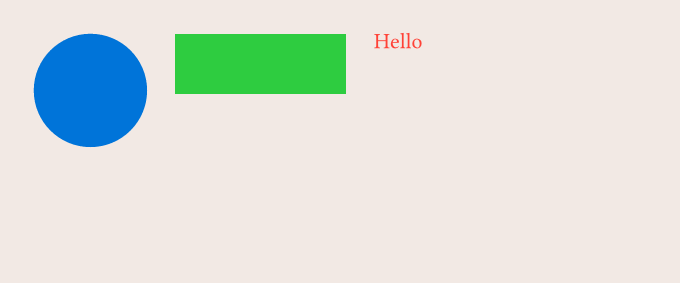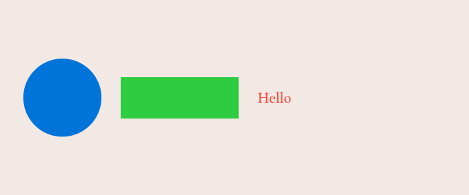 For example, I want to put a blue circle next to a green rectangle, next to red text. How can I do that?